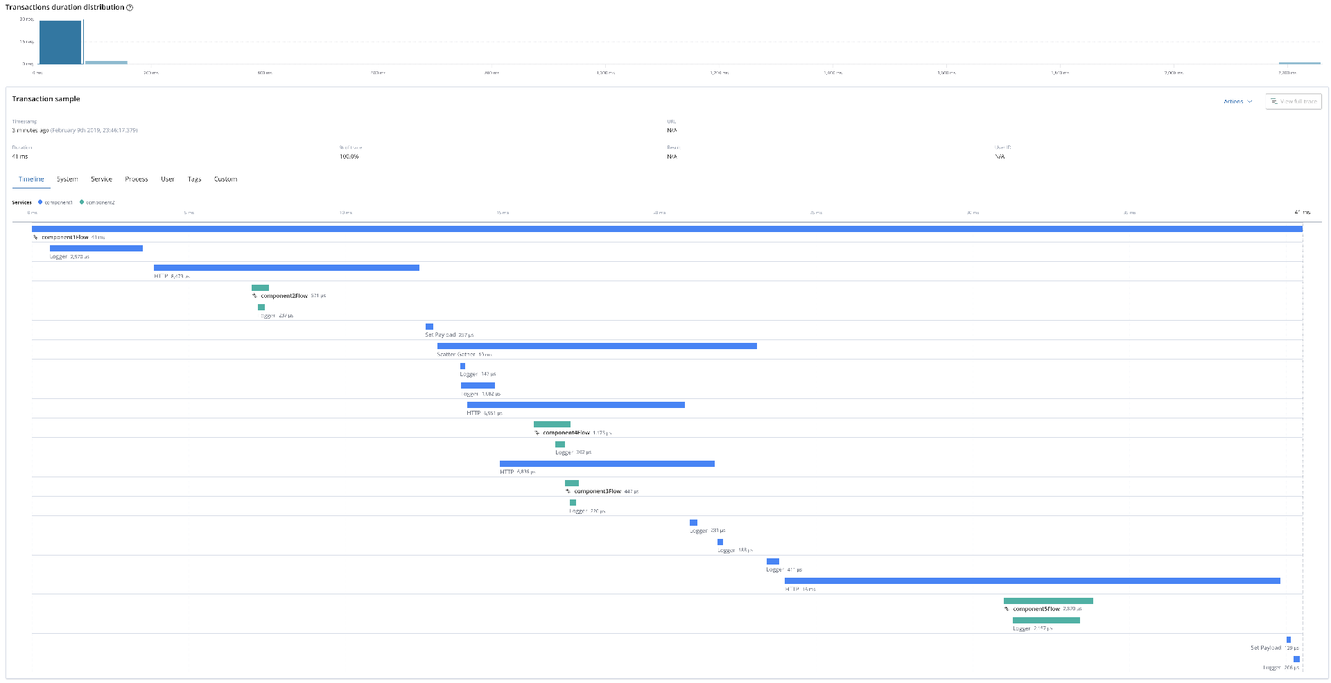 為企業開發構建基于私有化部署的MuleSoft服務監控管理平臺,基于APM框架采用無入侵式服務監控全流程實時監控服務組件運行狀態、組件實例監控、交易量、運行時長、告警信息等全Flow環節實時監控。