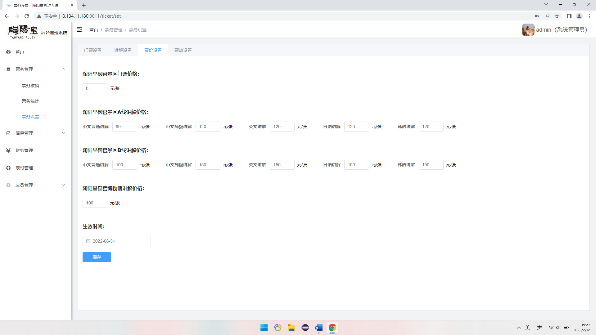 票務(wù)設(shè)置 | 可以設(shè)置票價(jià)、鎖票、高級(jí)權(quán)限管理員可手動(dòng)增減票等 | |